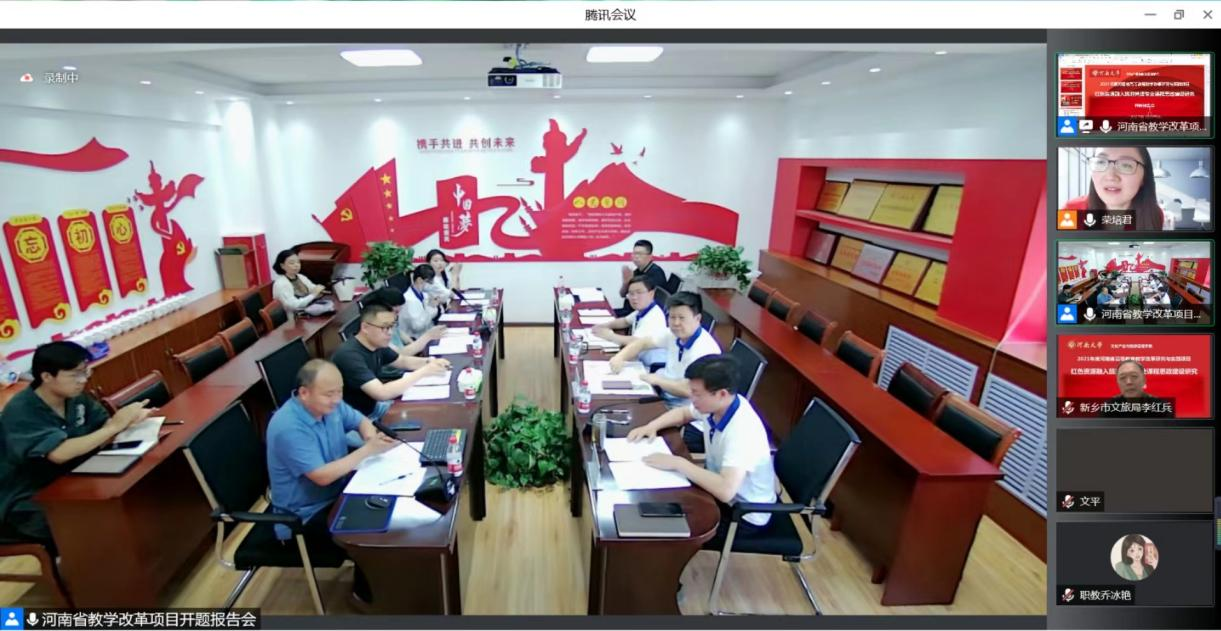 2022年6月17日下午,由文化产业与旅游管理学院组织的2021年度河南省高等教育教学改革研究与实践项目“红色资源融入旅游管理专业课程思政建设研究”开题报告会在学院会议室进行。会议由m88在线网站入口副院长徐飞主持,m88在线网站入口正处级组织员许俊峰、副院长张召鹏、课题组全体成员及部分研究生、本科生参加了此次会议。新乡市文化广电和外事旅游局副局长李红兵、河南科技学院食品学院副院长/旅游管理专业负责人文平、河南财经政法大学旅游与会展学院副教授荣培君、m88在线网站入口马克思主义学院副教授张涛、m88在线网站入口文化产业与旅游管理学院教授陈楠等作为评议专家进行了点评。会议采取线上与线下相结合的方式举行。