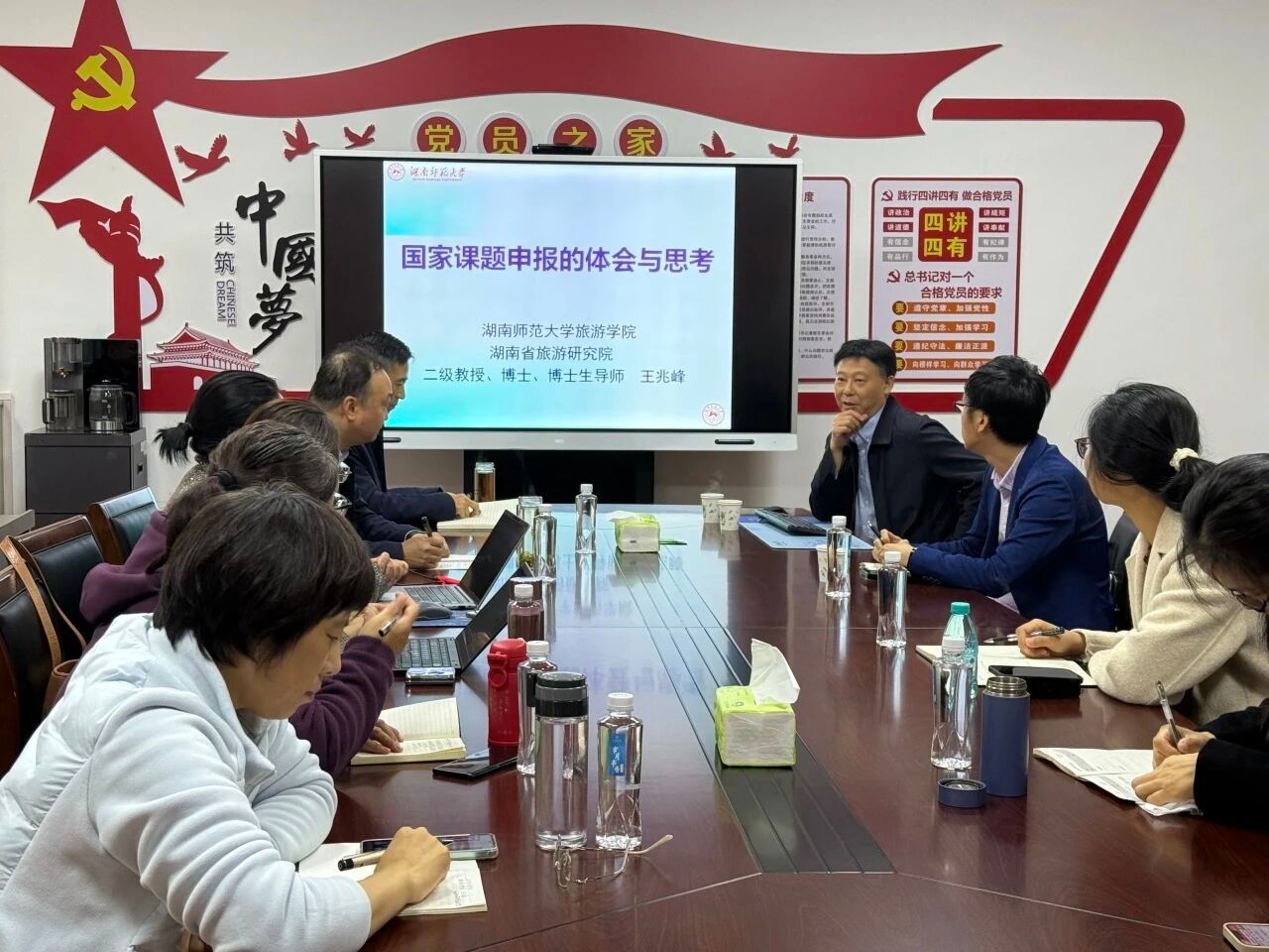 讲座尾声,程遂营教授作总结发言。他高度肯定王兆峰教授分享的实用价值,认为讲座内容既有宏观政策解读,又有微观实操指导,有效解决了师生在国家课题申报中的诸多困惑,为学院科研工作的提质增效注入新动力。他表示,希望未来能进一步加强与王兆峰教授及湖南师范大学旅游学院的学术交流,助力学院师生在科研道路上少走弯路、多出成果。讲座在师生们的热烈掌声中圆满结束。