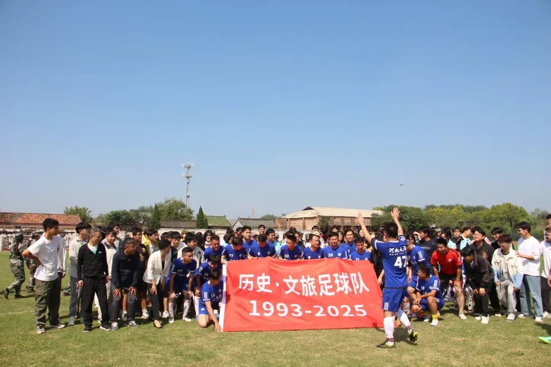 随着裁判哨响,比赛正式拉开帷幕。历史-文旅联队球员配合默契,凭借丰富的赛场经验频频发起攻势;赞助方联队活力十足,凭借灵活的跑位与快速反击积极应战。抢断、传球、射门…… 每一个动作都引得场边新生阵阵欢呼。他们用汗水诠释着对足球的热爱,更展现出历史—文旅人 “敢拼敢闯、永不言弃” 的精神风貌。