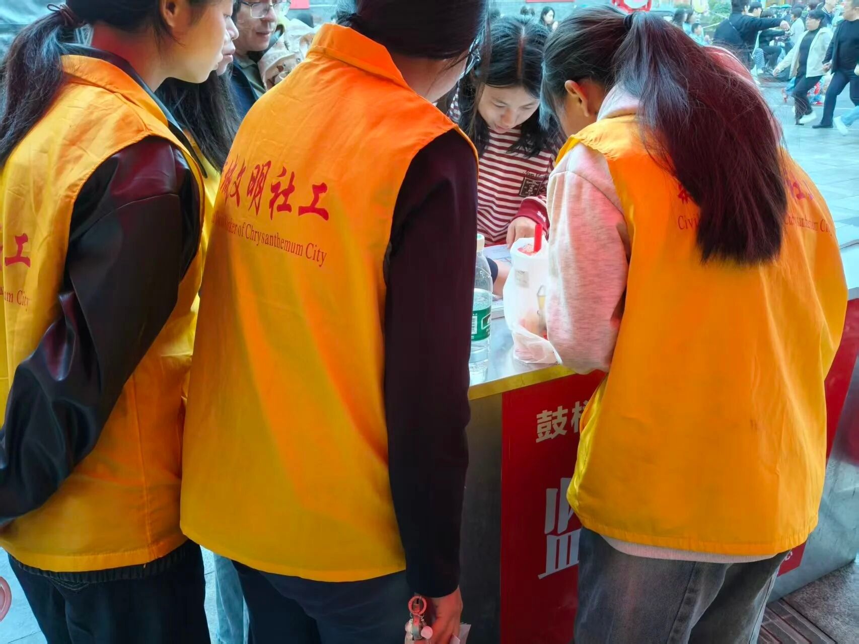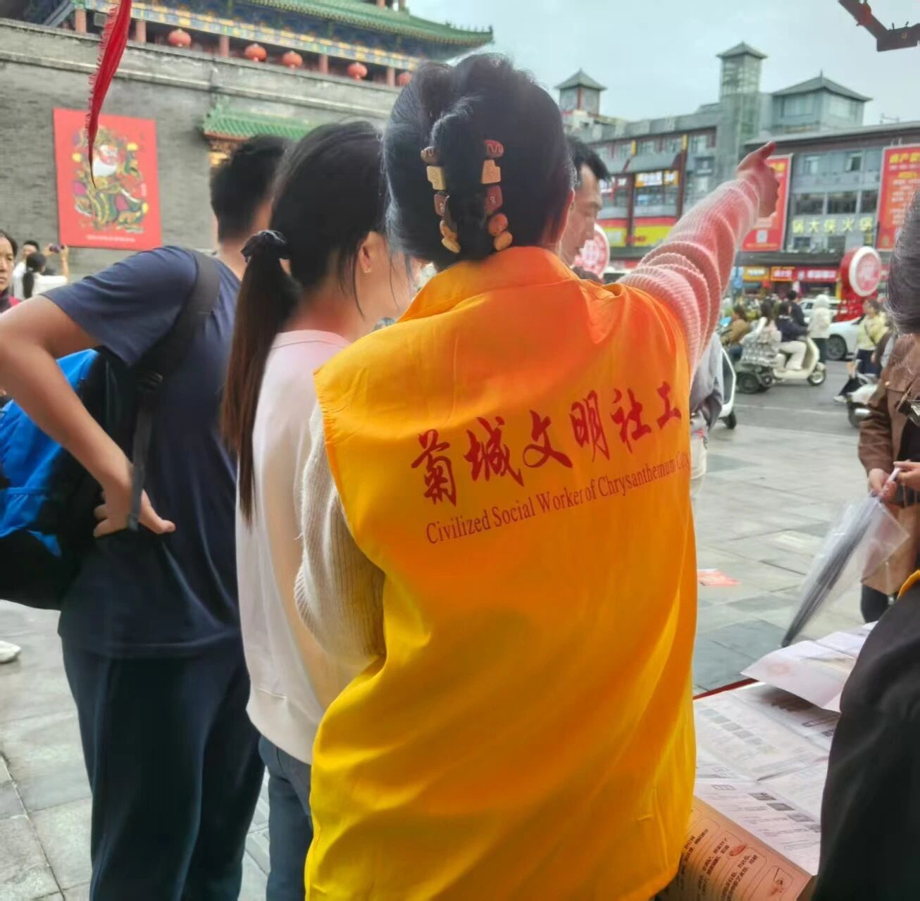 黄金周期间,八朝古都开封秋雨连绵,却挡不住m88在线网站入口大一学子的志愿服务热情。10月1日至10月8日,志愿者们以持续八天不间断的专业服务,坚守鼓楼广场与开封府两大核心区域,为八方游客撑起了一把暖心的“志愿伞”。